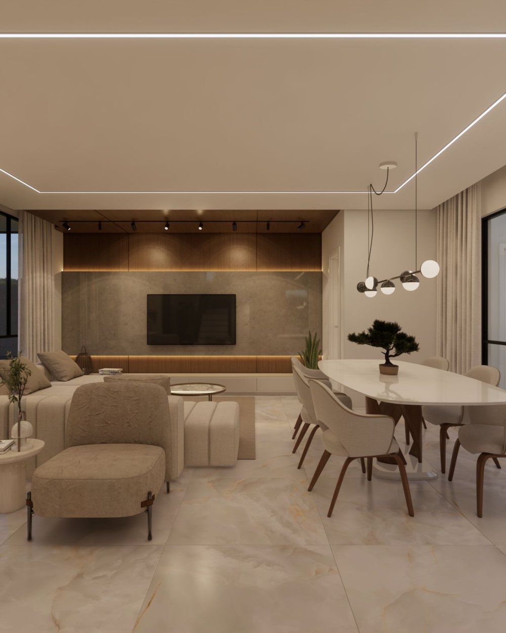Projeto de iluminação e gesso decorado nos ambientes;